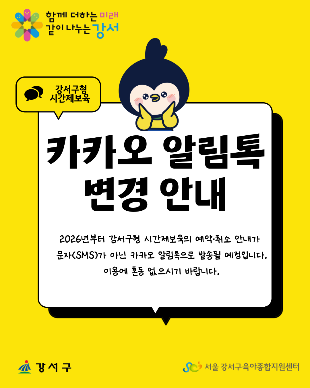 [강서구형시간제보육] 카카오 알림톡 변경 안내