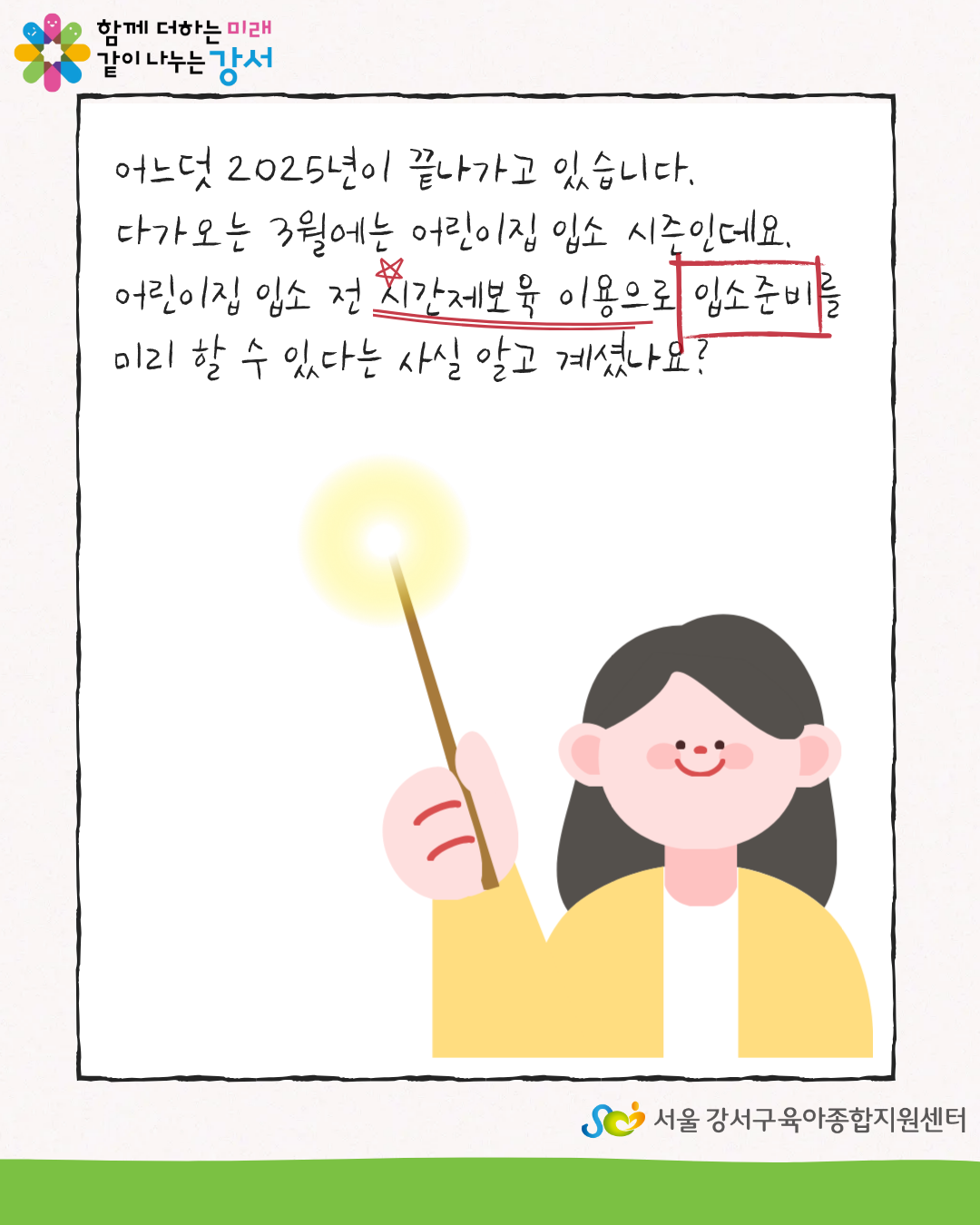 [강서구형시간제보육] 어린이집 입소준비는 시간제보육과 함께
