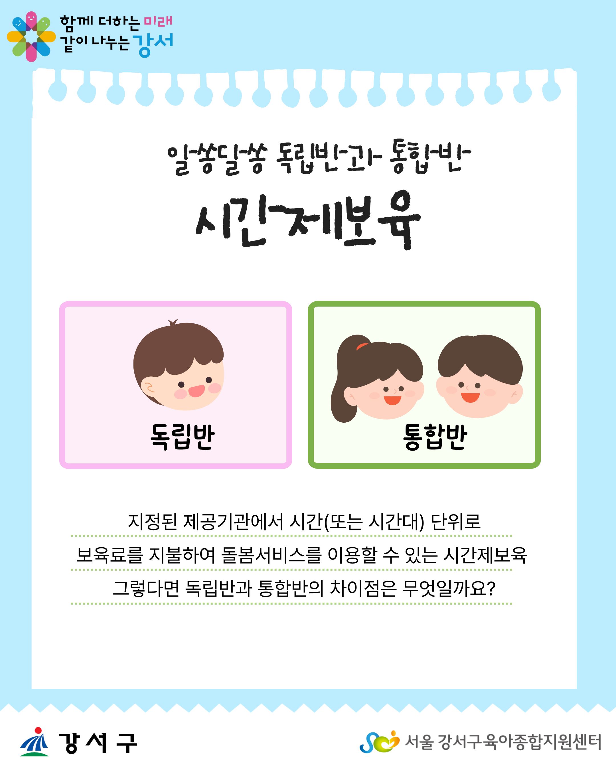 [강서구형시간제보육] 시간제보육 유형 (독립반,통합반)