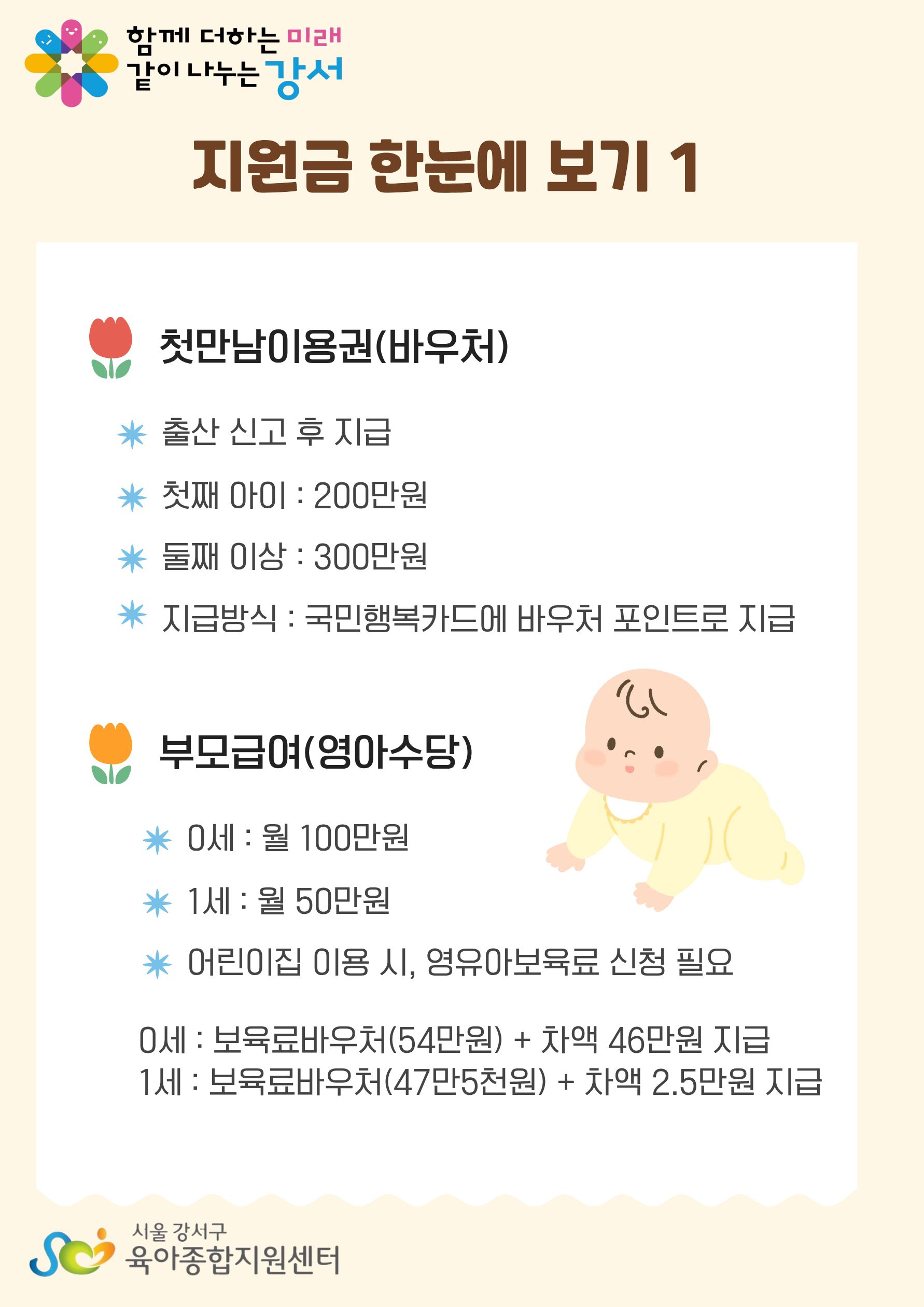 [강서구형시간제보육] 출산하면 나오는 지원금 알아보기